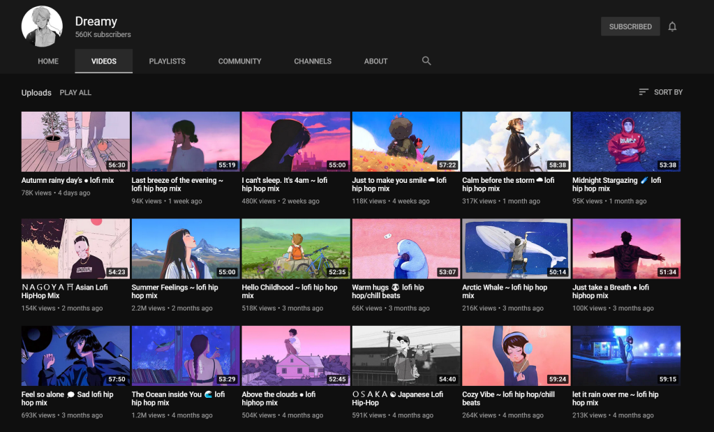 While trying to keep up with the frankly absurd number of things that I am trying to do this term, I have had their music running in the background, filling my ears with a kind of nostalgia and evocation. Chillhop might be the music for the present moment, one where we are not present at all, but rather are in some ways dissociated and schizoid while still being in some sense “productive”, in transit, reading, replying to emails and so on. It’s an experience of absence, a yearning for something(?), but one isn’t quite sure what and one listens always with a half ear that some artificial intelligence or algorithm of some kind might have produced this feeling to resonate with something specific to your experience with talented multi-instrumentalists as its puppets, a mass-produced affect just for you.